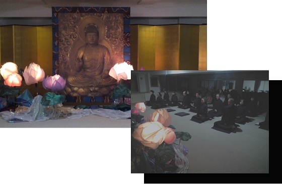 維摩會では、毎年4月8日に近い日曜日に3時間以上の坐禅を行ない、この日をお祝いします。多くの仲間とともに行なう坐禅は日常できない貴重な機会であり、大変良い修行となっています。