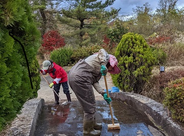 神事・修法の下準備は、年間を通して行なわれます。冬が来る前に、有志によって小川の泥さらい、草取り、木の切り出しなどを済ませます。都会でのデスクワークでなまった心身には、ちょうどよい気分転換にもなります。