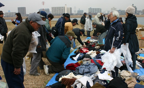 関東でのホームレス待望の衣類や毛布などの物品配布は、ひき続き、四半期毎に継続しています。