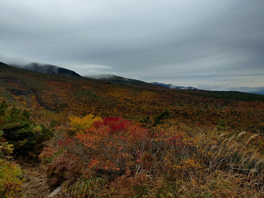 「安達太良山(あだたらやま)に登りましたが…強風でガスが強く(体力減退で歩くのも、大変)途中で引き返しました。近頃は熊出没で大騒ぎな宮城県ですが、自宅の近隣で姿見かけたの情報が多数あり…散歩も、静かなところは避けて…バス通り等歩いております。ホイッスルも、熊鈴も…ちょっと頼りないと思う此頃です。(熊スプレーは、売り切れ…です。)体力回復…安全第一に…頑張ります。」